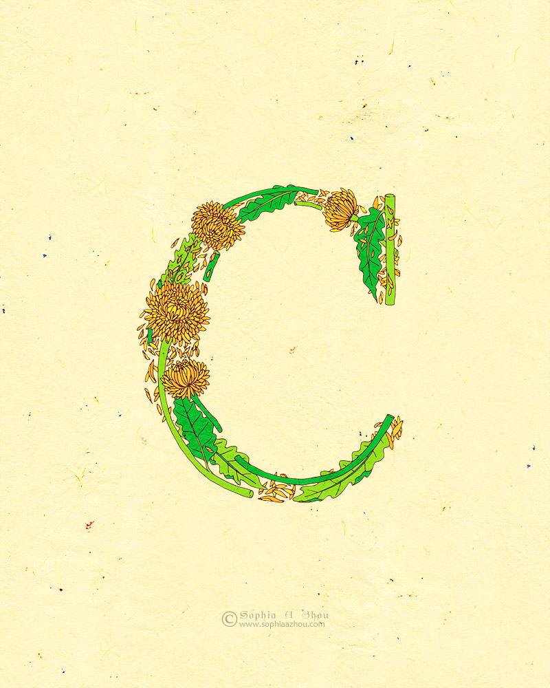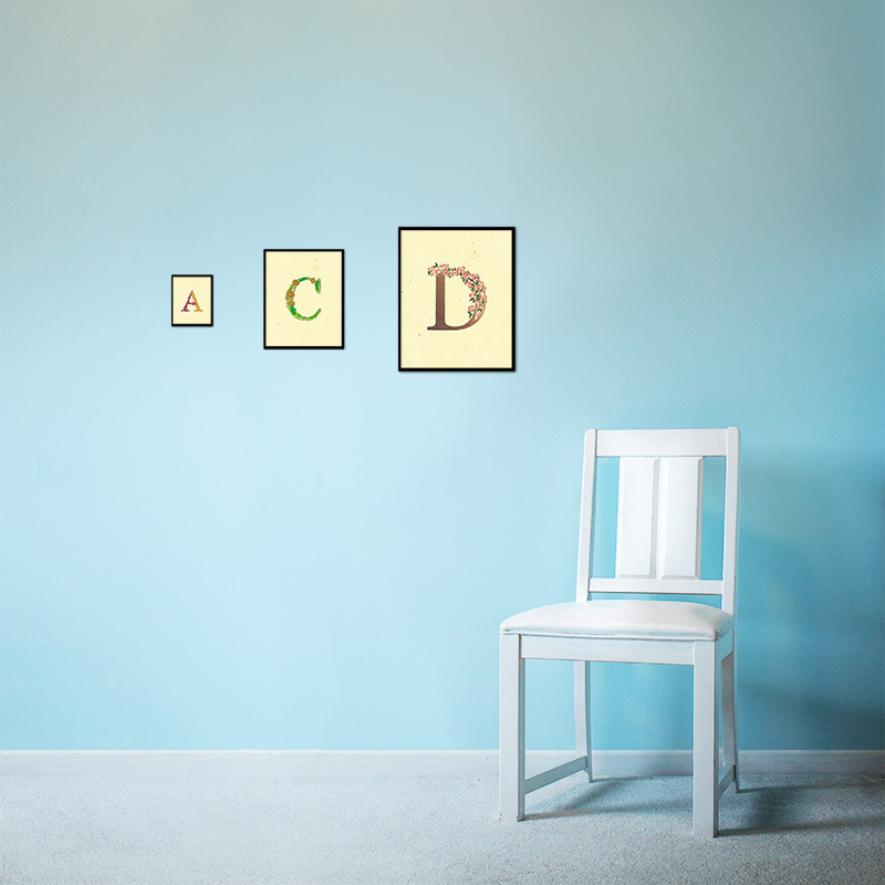These are high quality prints of a typeface I designed. They are printed on your choice of Luster or Metallic paper, available in 4" x 5", 8" x 10" and 11" x 14" dimension sizes. Each letter represents a respective plant, typically a flowering kind. These prints are produced with a Noritsu photo printer that exposes light-sensitive Kodak Professional Digital Metallic or Luster Paper that is then run through a chemical process. They are rated as archival.