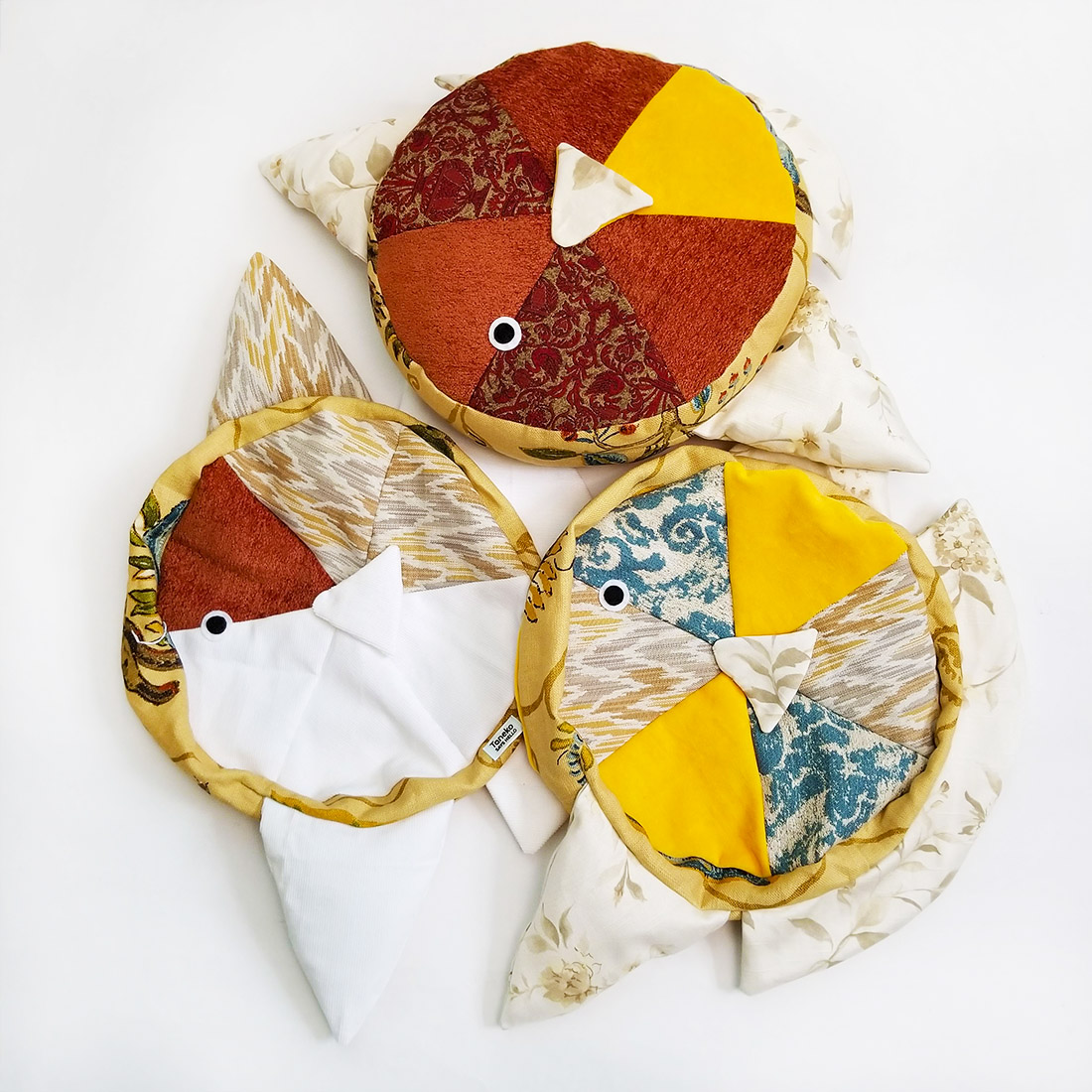 Due to their repurposed nature, no two sunfish friends are alike, and their fabric patterns and colors are only available in small, limited quantities.