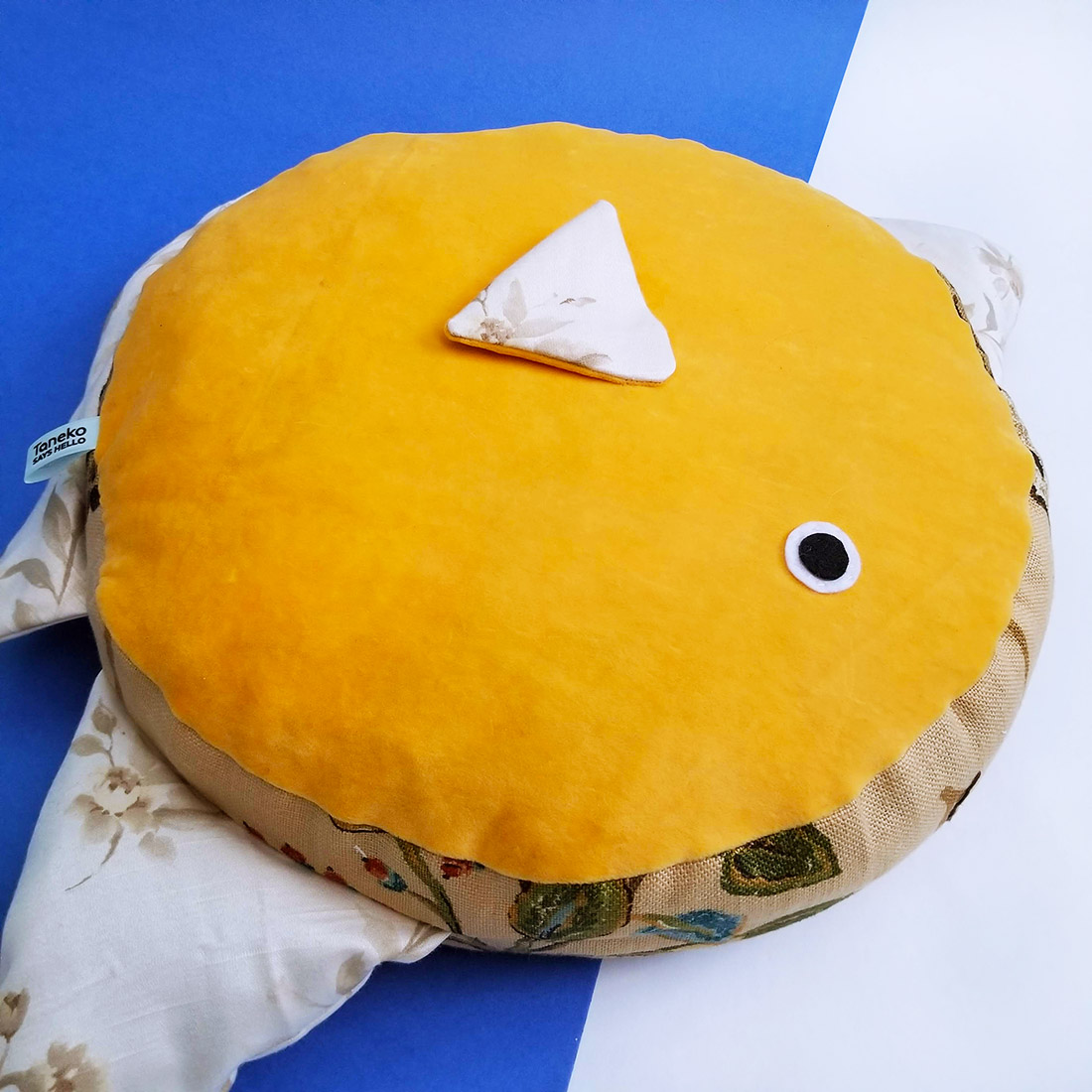 Sunfish Zafu is the heaviest plush friend I’ve got! The lowest shipping cost is with USPS Priority Mail. If you are crafty with hand-sewing, I also have just the “shell” of this Mola mola cushion available (you’ll have to be able to sew it closed yourself). So if you're interested in stuffing a Sunfish Zafu with your own repurposed fabrics and remnants, please take a look in my shop for that listing!