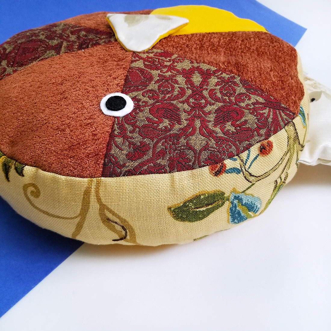 • REPURPOSED interior stuffing: ~95% fabric remnants, repurposed from the leftovers of fabrics I use to make my other plush friends (hooray sustainability!)