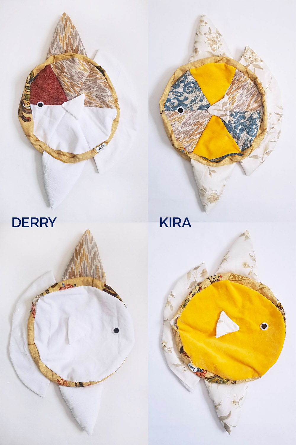 Due to their repurposed nature, no two sunfish friends are alike, and their fabric patterns and colors are only available in small, limited quantities.