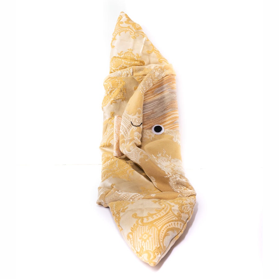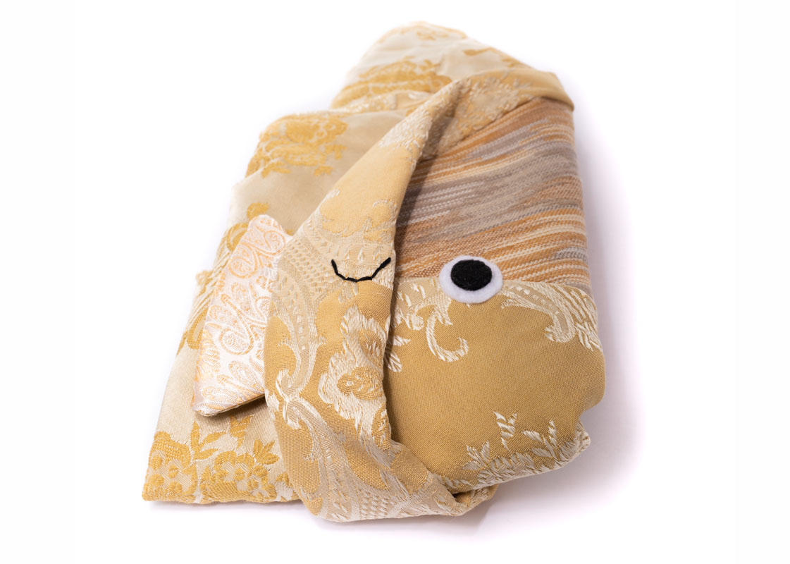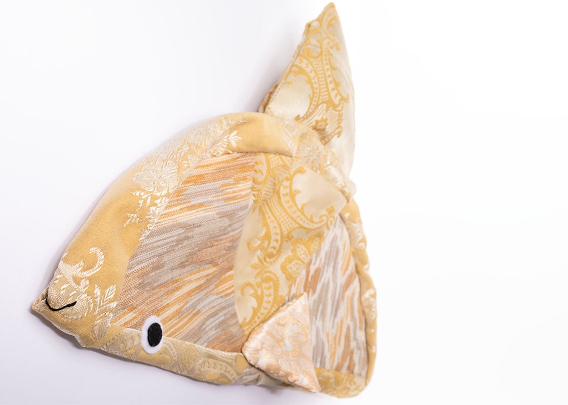 A “zafu” is a round cushion, often used in Japanese and Chinese meditation. This plush friend is inspired by the ocean sunfish, or Mola mola, and is made of repurposed materials!