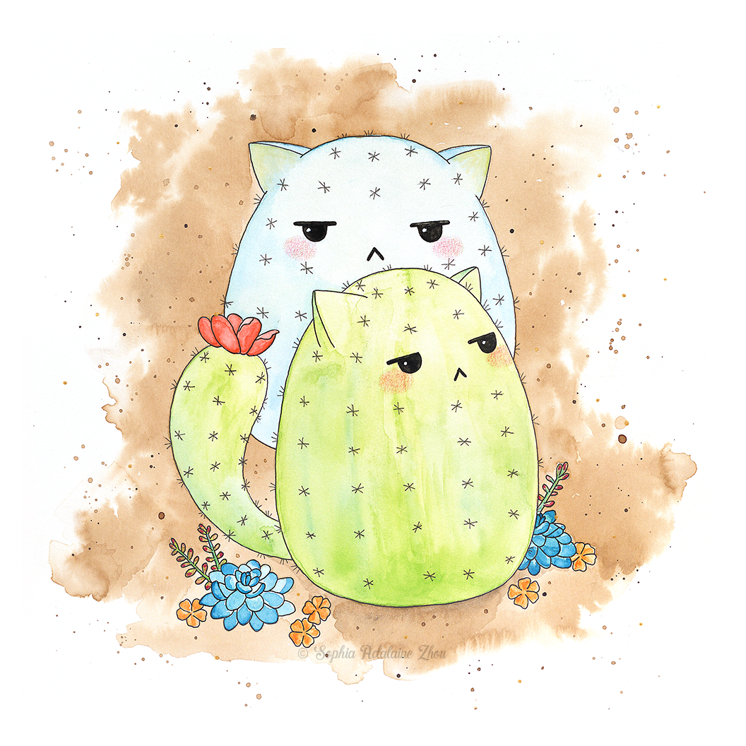 This piece is 11"x11" and printed on card stock paper. It’s part of an ongoing mixed media illustration series featuring the characters I’ve created!