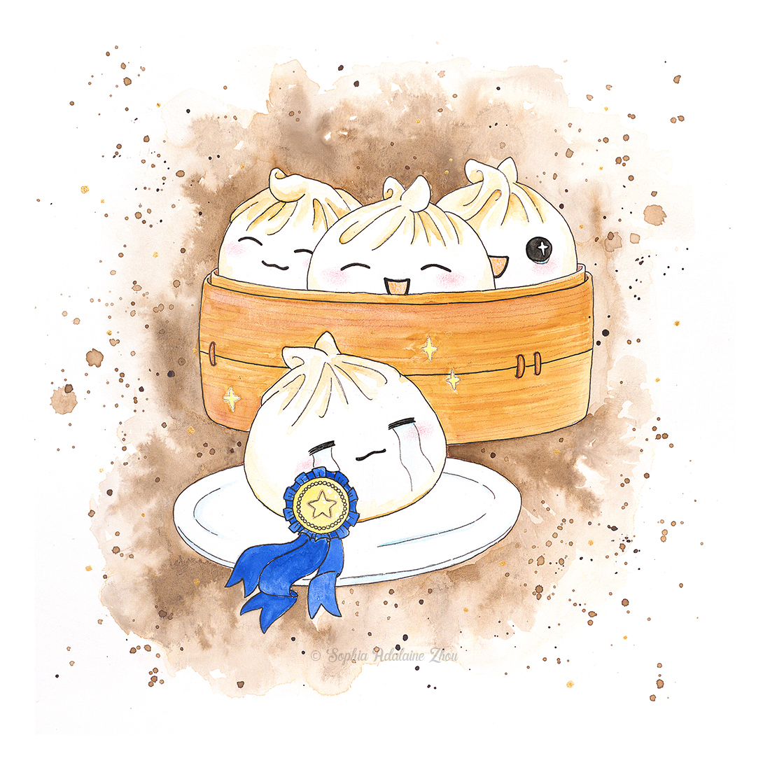 This piece is 11"x11" and printed on card stock paper. It’s part of an ongoing mixed media illustration series featuring the characters I’ve created!