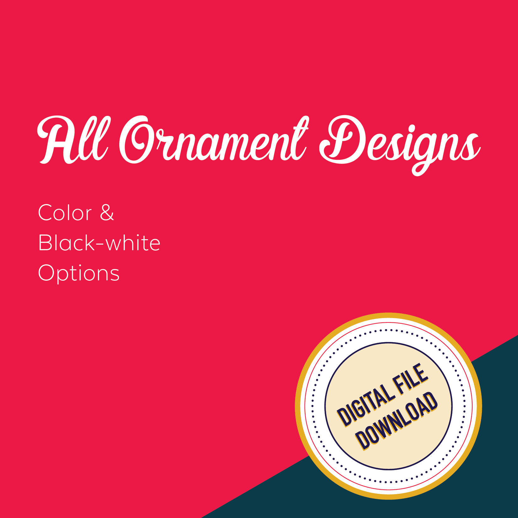 This is a special discount listing is for ALL 5 ornament designs, each of which includes a color AND black-and-white version, so you can print them in full color, or in B&W on white (or color) paper—or both!