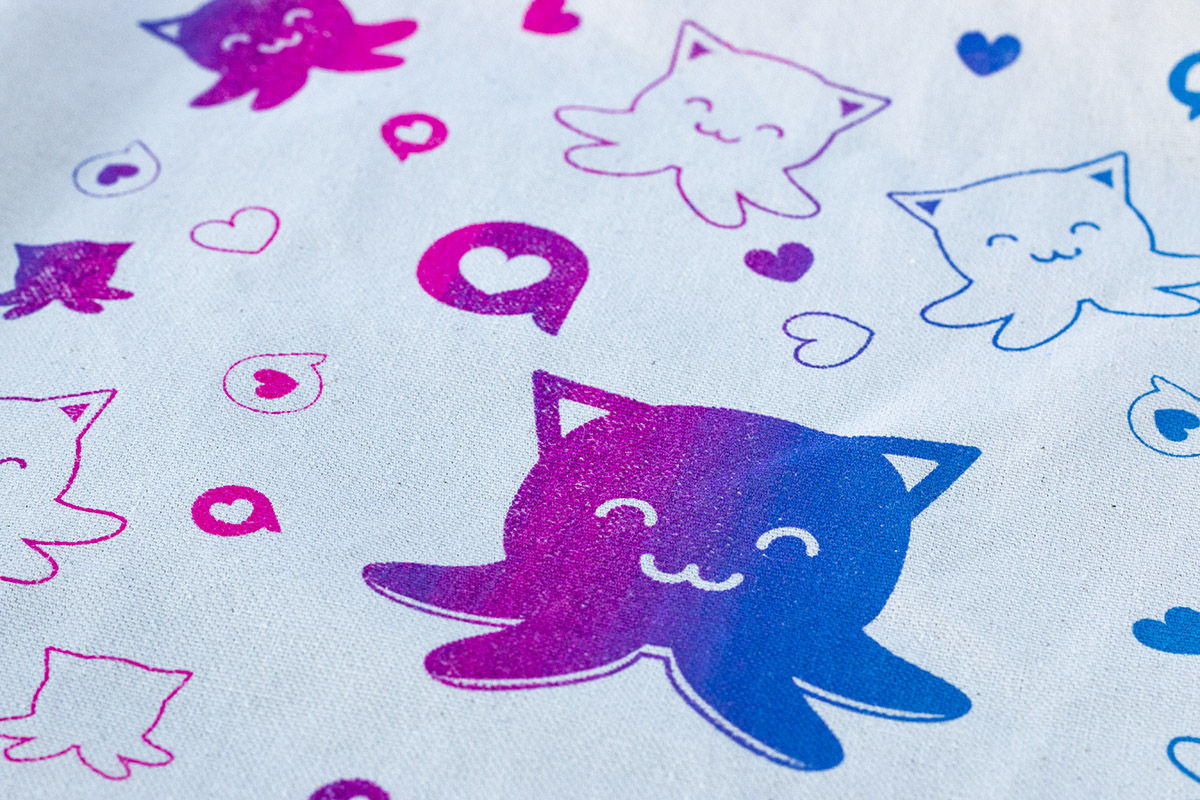 The prints are hand-pulled with environmentally-friendly water-based inks. This, combined with the color gradient aspect, creates a slight variation between each bag and makes each tote totally unique!