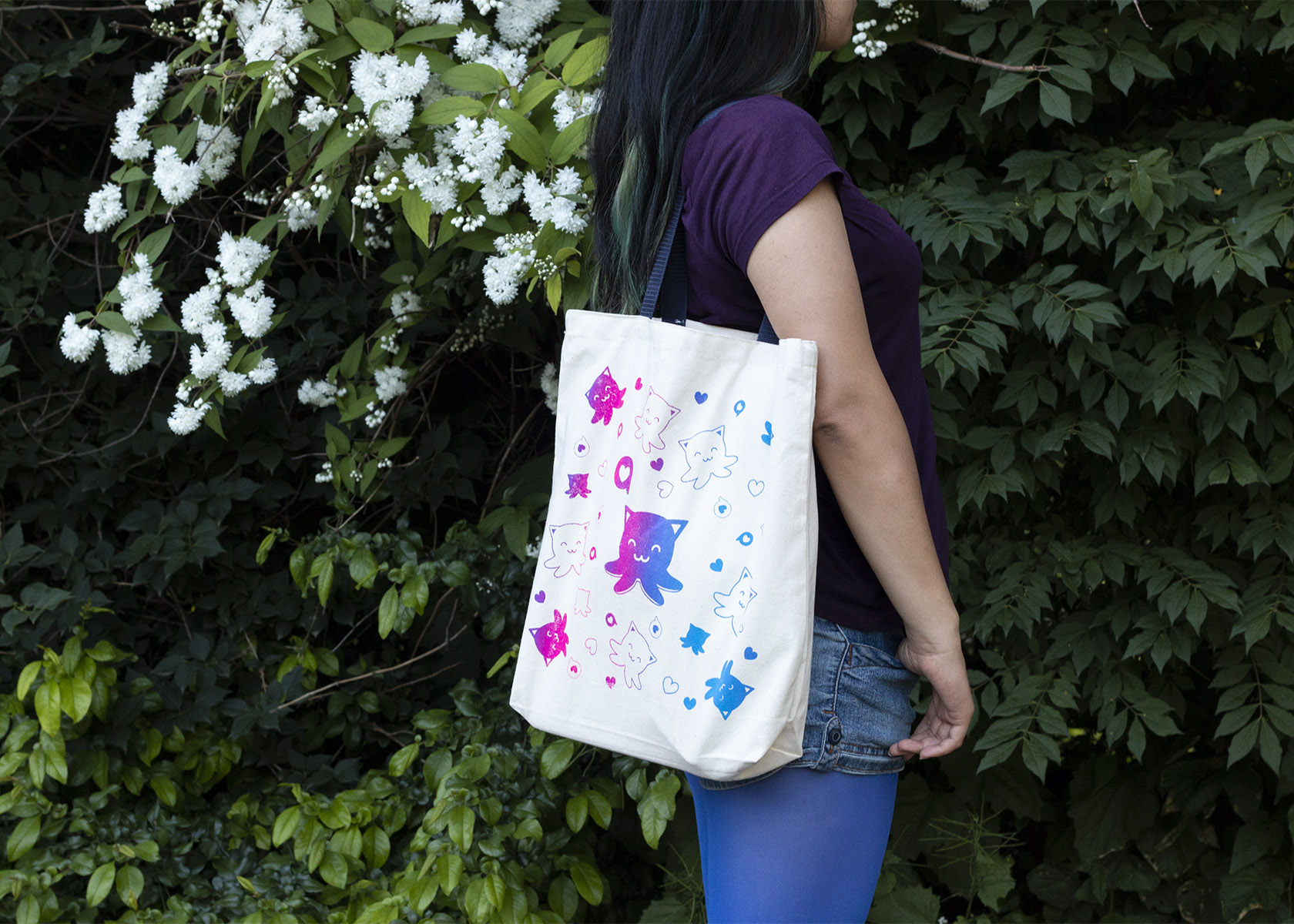 Each tote is printed (with the same design) on both sides of the bag! For twice the fun~ :3
