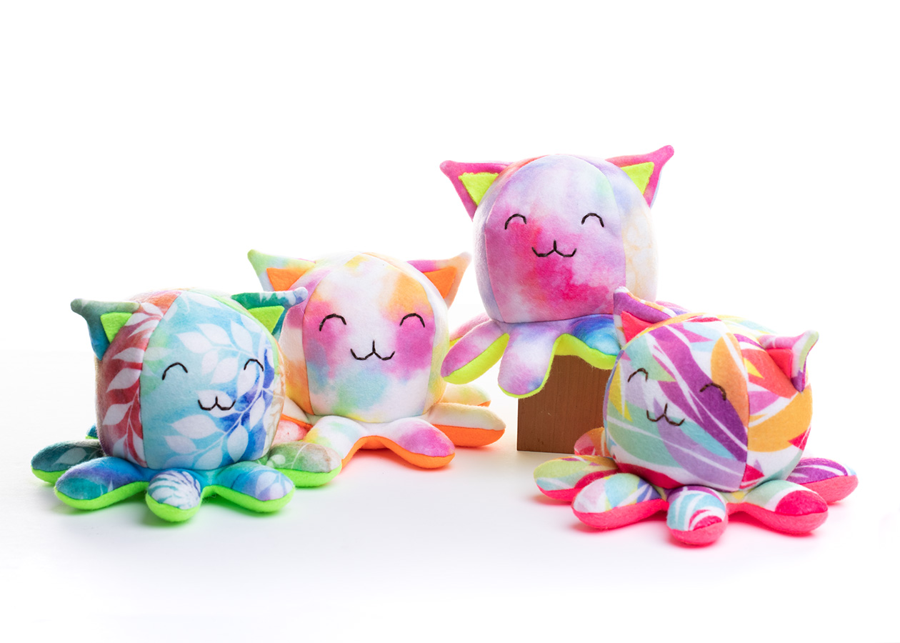 Taneko says hello! This collection is made with high-quality, soft polyester fleece that is custom-printed with designs by independent artists on Spoonflower :)